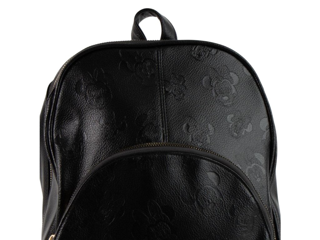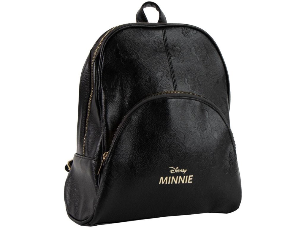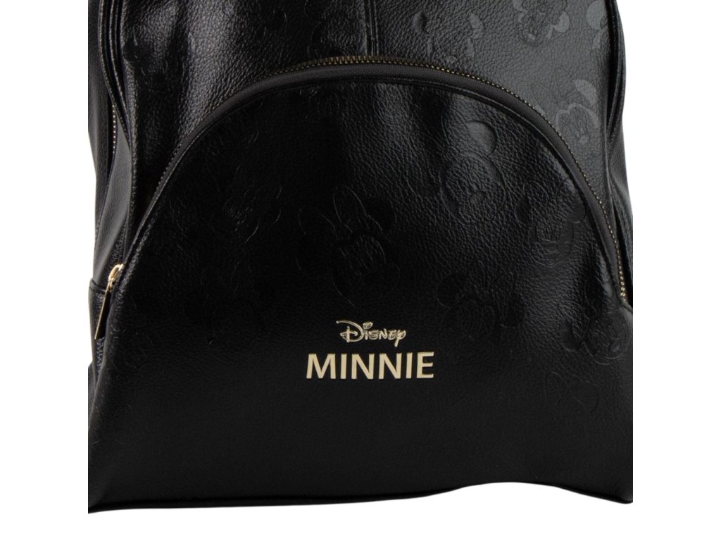 Černý luxusní batoh vyvedený s ikonami Minnie Mouse. Batoh má zapínání na zip, vnitřní menší kapsu, délkově nastavitelné popruhy a ucho pro snadné nošení v ruce pro každého menšího i většího fanouška myšky Minnie.