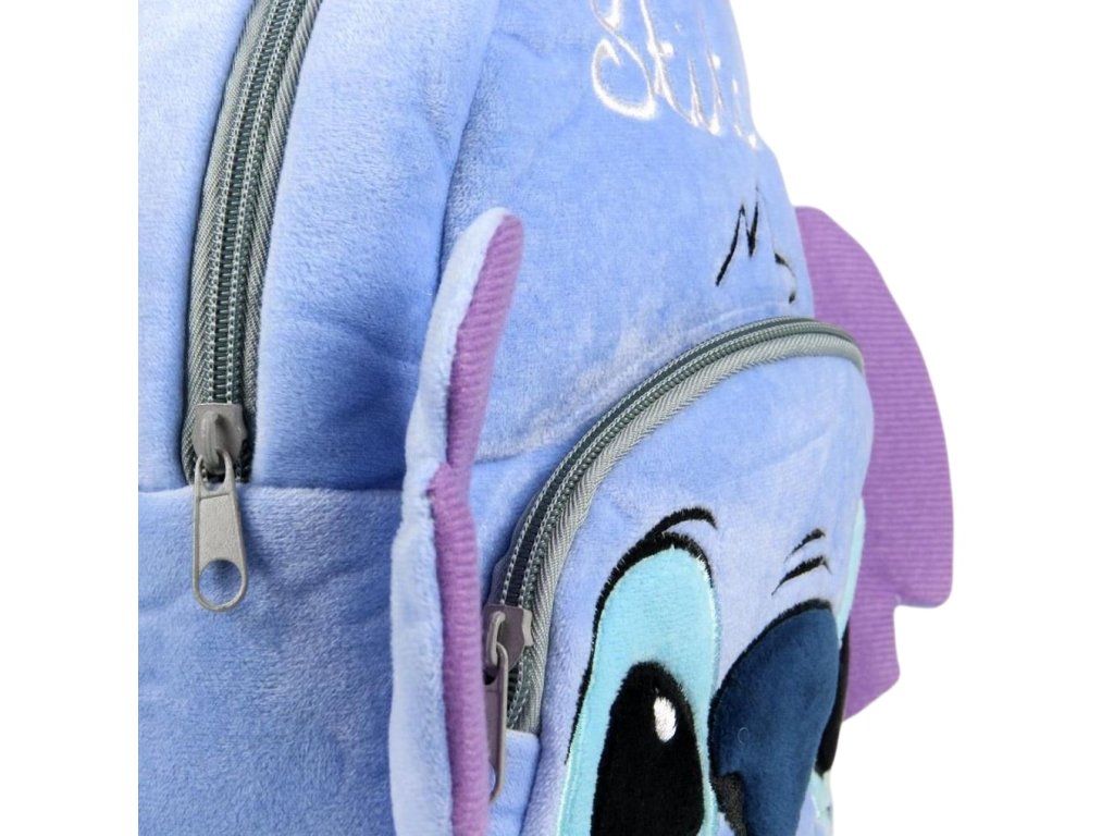 Stylový batůžek s 3D fialovými vyčnivajícími detaily ve formě uší, vyvedený v motivu oblíbené postavičky Stitch. Batoh má jednu větší kapsu a jednu menší kapsu na dropnosti, zapínání obou kapes na zip. Batoh má nastavitelné ramenní popruhy. Kvalitní zpracování a odolné zipy zajišťují dlouhou životnost. Vyrobeno z prodyšného a odolného polyesterového materiálu vhodného pro každodenní nošení.