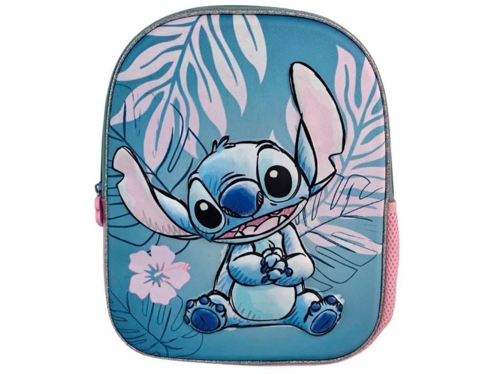 Stylový dětský batůžek s 3D motivem oblíbené postavičky Stitch. Má plně podšitý a personalizovaný vnitřek, polstrovaná záda a ergonomické, nastavitelné a měkce polstrované ramenní popruhy. Batoh disponuje velkou hlavní kapsou a boční síťovanou kapsičkou třeba na láhev. Kvalitní zpracování a odolné zipy zajišťují dlouhou životnost. Vyrobeno z prodyšného a odolného polyesterového materiálu vhodného pro každodenní nošení.