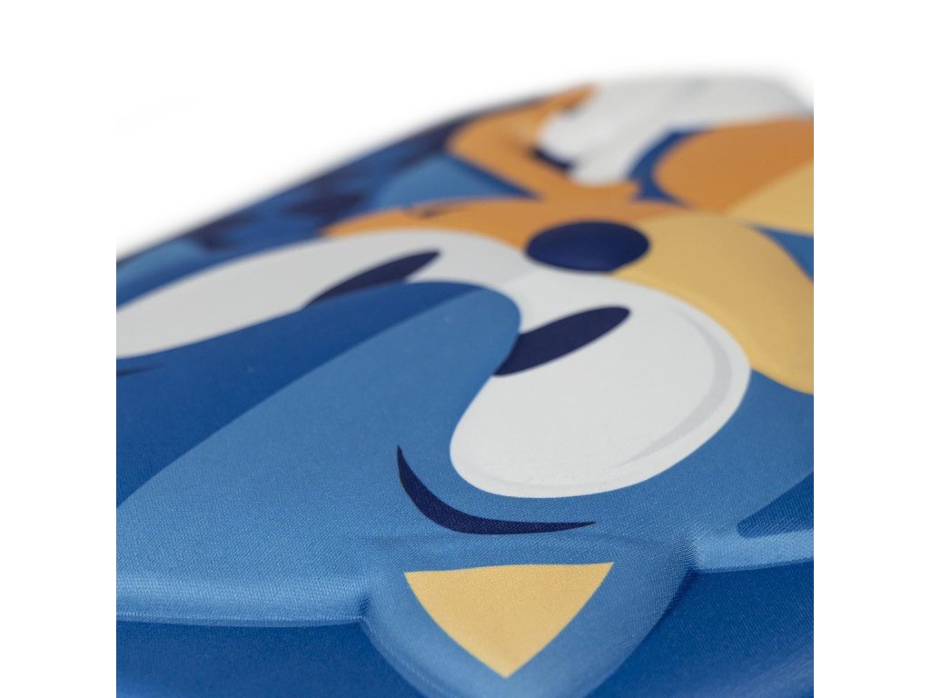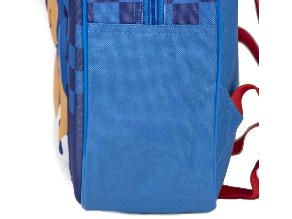 Modrý dětský batoh inspirovaný postavičkou Sonica s rukama vbok z populární hry a stejnojmenného filmu Sonic The Hedgehog. Batoh má jednu velkou kapsu. Batoh je opatřen uchem na nošení v ruce a dvěma nastavitelnými popruhy na záda.