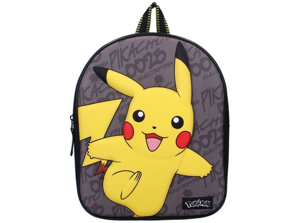 Vstupte do světa Pokémonu s tímto veselým a praktickým dětským batohem. Ideální do školky, na výlety nebo volný čas. Batoh je lehký, pohodlný a velikostně uzpůsobený menším dětem. Má velkou hlavní kapsu na zip a nastavitelné popruhy pro pohodlné nošení. Dětský atraktivní černý batoh s 3D grafikou hlavního Pokémona Pikachu.Motiv vysmátého pokémona Pikachu potěší každého malého fanouška.