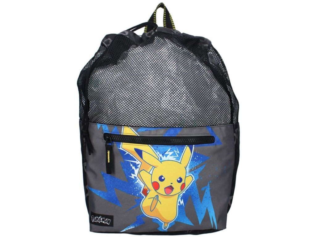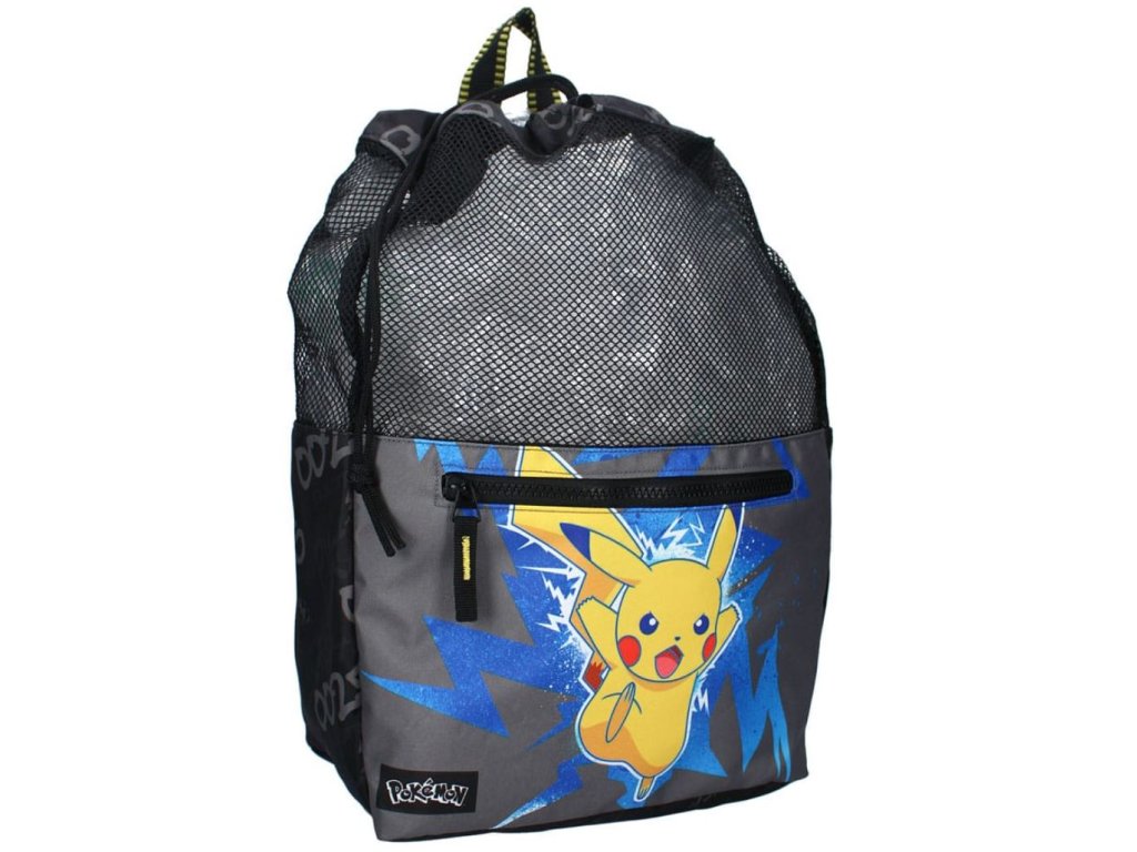 Vstupte do světa Pokémonu s tímto praktickým sportovním batohem. Ideální do gymu, na sport nebo volný čas. Batoh je lehký, pohodlný a velikostně uzpůsobený. Má velkou hlavní kapsu na stahování, jednu menší kapsu na zip na drobnosti a nastavitelné popruhy pro pohodlné nošení. Atraktivní černo-šedý batoh s grafikou hlavního Pokémona Pikachu. Motiv akčního pokémona Pikachu potěší každého malého fanouška.