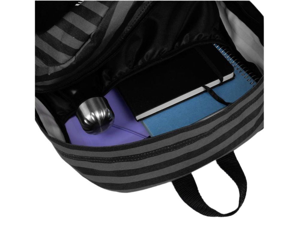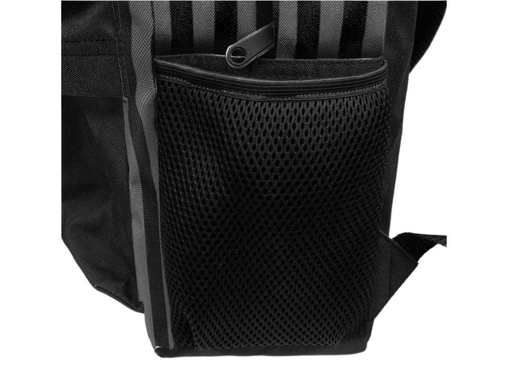 Stylový černý batoh s pruhovaným designem inspirovaný světem Wednesday zaujme na první pohled výrazným motivem akademie Nevermore Academy. Temný a elegantní vzhled perfektně podtrhuje charakter celého designu, který ocení každý fanoušek tohoto populárního seriálu. Batoh nabízí jeden prostorný hlavní oddíl doplněný o praktickou přední kapsu na zip pro uložení drobností. Nechybí ani boční síťovaná kapsa vhodná například na láhev, či deštník. Pro maximální pohodlí při nošení jsou záda polstrovaná a ramenní popruhy délkově nastavitelné. Praktické horní madlo umožňuje snadné přenášení v ruce. Ideální do školy, na volný čas i každodenní nošení.