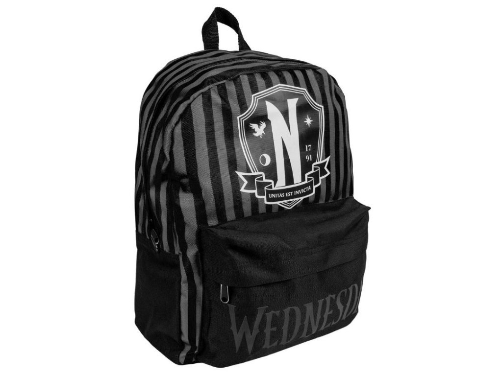 Oficiální produkt - batoh z katalogu zboží s grafikou a licencí populárního mysteriózního seriálu Wednesday od společnosti Netflix.