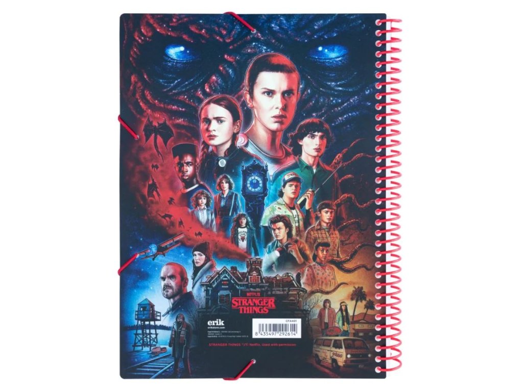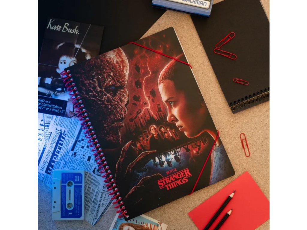 Oficiální produkt - blok v kroužkové vazbě z katalogu kancelářského a dárkového zboží s grafikou, motivem a licencí populárního seriálu Stranger Things od streamovací spolčnosti Netflix.
