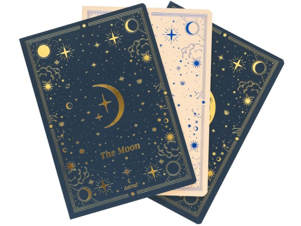 Set tří A5 zápisníků s atraktivním motivem hvězd a souhvězdí. Každý blok má měkkou vazbu s jedinečným designem. Dalším plusem zápisníků je to, že každý zápisník má jiné stránky (linkovaný, nelinkovaný a tečkovaný), takže je můžete střídat dle potřeby. Zápisníky jsou vhodné i jako dárek pro všechny fanoušky astonomie.
