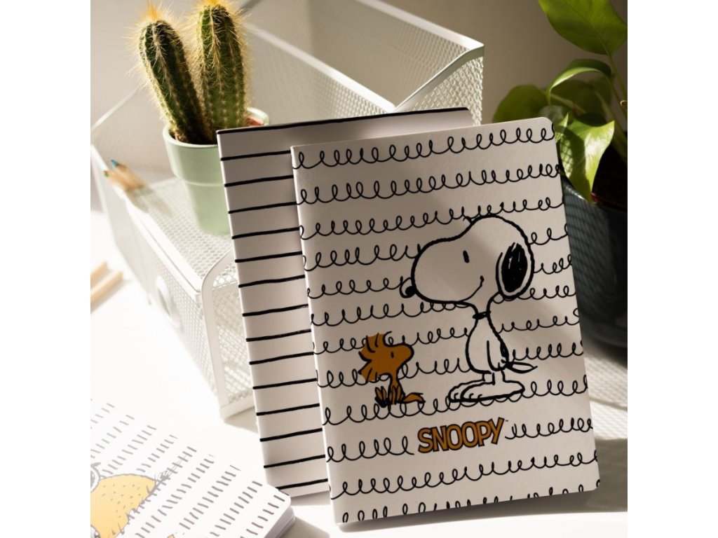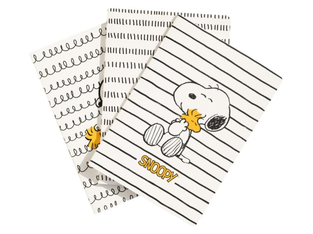 Oficiální produkt - zápisníky z katalogu zboží s grafikou a licencí kreslené postavy psa Snoopyho.