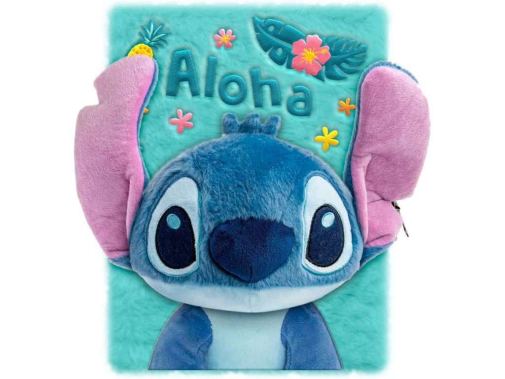 Modro-zelený plyšový blok ve formátu A5 vyvedený jako Stitch s ušima a nápisem: ,,Aloha'' z pohádky Lilo and Stitch.. Linkovaný poznámkový blok formátu A5 s tvrdou vazbou je dokonalým parťákem pro všechny malé i velké fanoušky.
