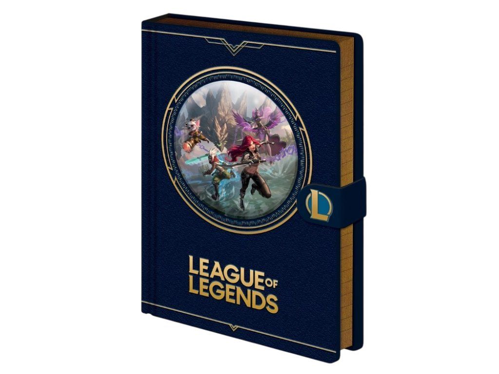 Oficiální produkt - zápisník ve formátu A5 z katalogu kancelářského zboží s grafikou a licencí populární týmové videohry League of legend (Liga legend).
