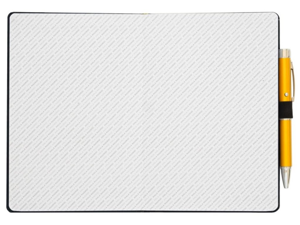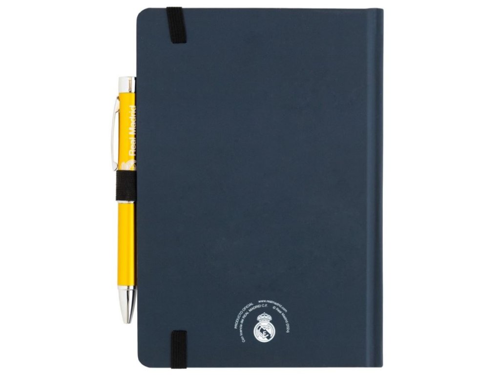 Prémiový zápisník velikosti A5 v pevné vazbě a s potiskem znaku fotbalového klubu FC Real Madrid. Blok obsahuje 96 nelinkovaných listů (192 stran), propisku, látkovou záložku a obálku na zadní pevné straně bloku. Zápisník je vhodný i jako dárek pro všechny fotbalové fanoušky a nesmí tak chybět žádnému velkému fanouškovi pro jeho poznámky.