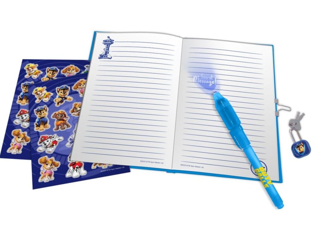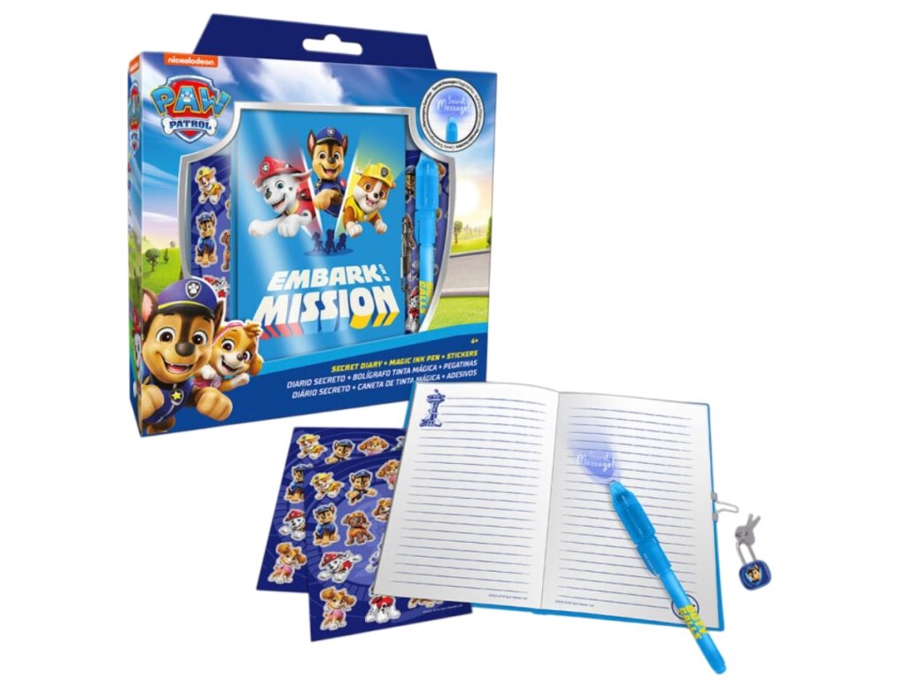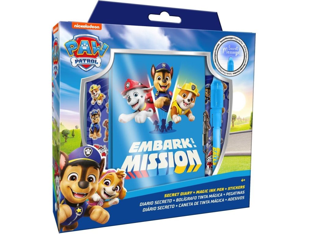Tahle kouzelná sada s motivem psích superhrdinů z pohádky Tlapková patrola je splněný sen pro všechny malé milovníky psaní a tvoření. Obsahuje linkovaný deníček s pevnou vazbou a se zámkem na uzamknutí tajemných poznámek, svítící tajemné pero a spoustu barevných samolepek, které rozzáří každý příběh nebo obrázek. Skvělý společník pro malé snílky, kteří rádi tvoří vlastní svět plný fantazie.