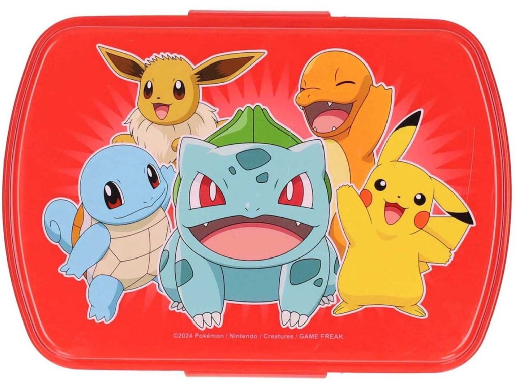 Oficiální produkt - svačinový box z katalogu výrobků s grafikou a licencí populární animované pohádky Pokémon.