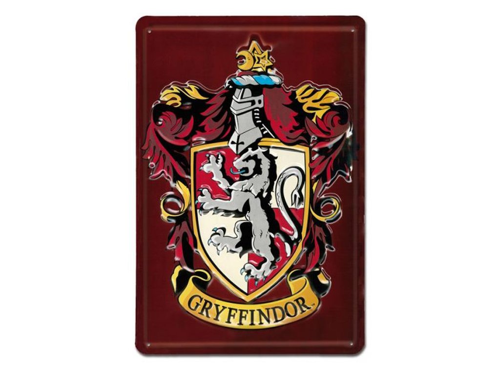 Hnědá cedule na zeď se znakem koleje Gryffindor (Nebelvír) z filmové a knižní sci-fi ságy Harry Potter.