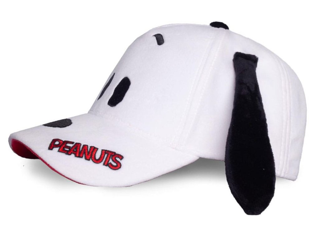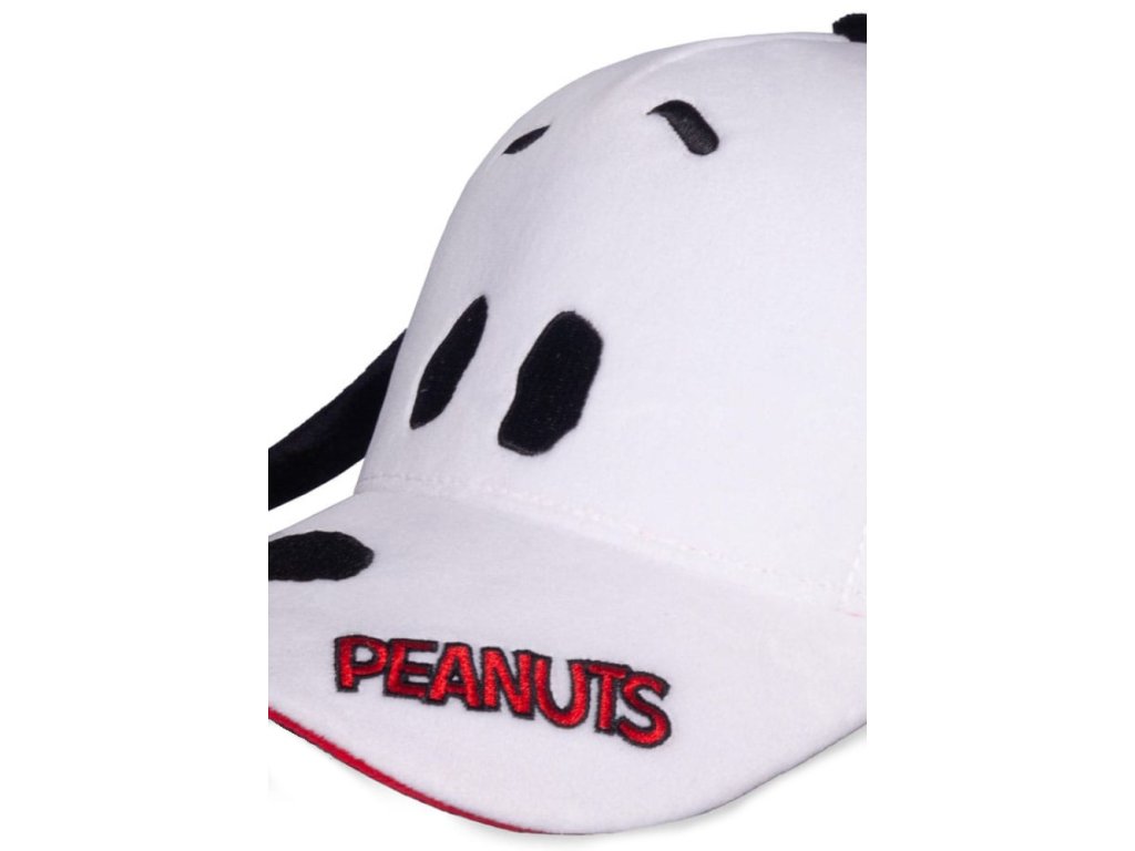 Baseballová bílá čepice s 3D ušima, vyvedená v grafice populární kreslenou postavičkou Snoopyho. Kšiltovka je zdobena textem "PEANUTS". Kšiltovka má vzadu nastavitelný řemínek.