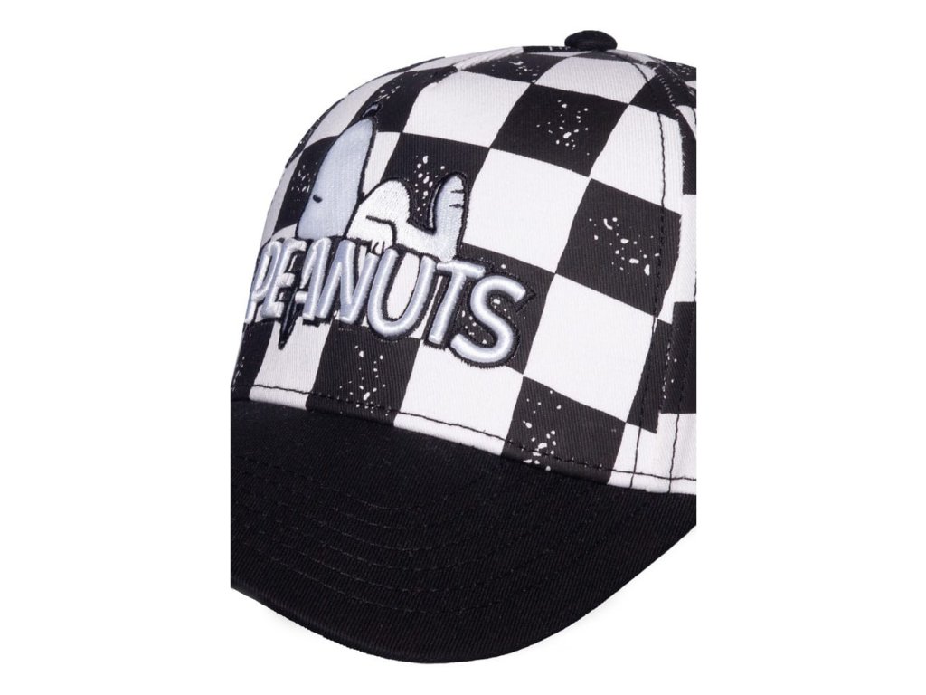 Baseballová čepice v černo bílé barvě s detaily inspirovaná kreslenou postavičkou Snoopyho. Kšiltovka je zdobena textem "PEANUTS". Kšiltovka má vzadu nastavitelný řemínek na suchý zip.