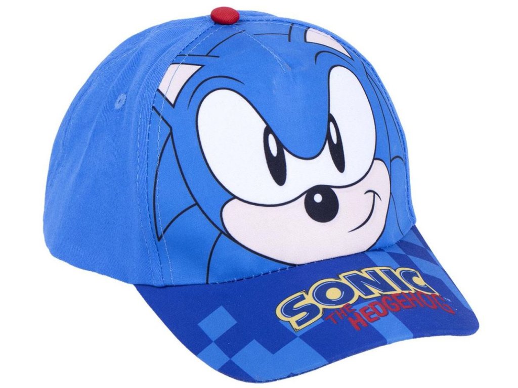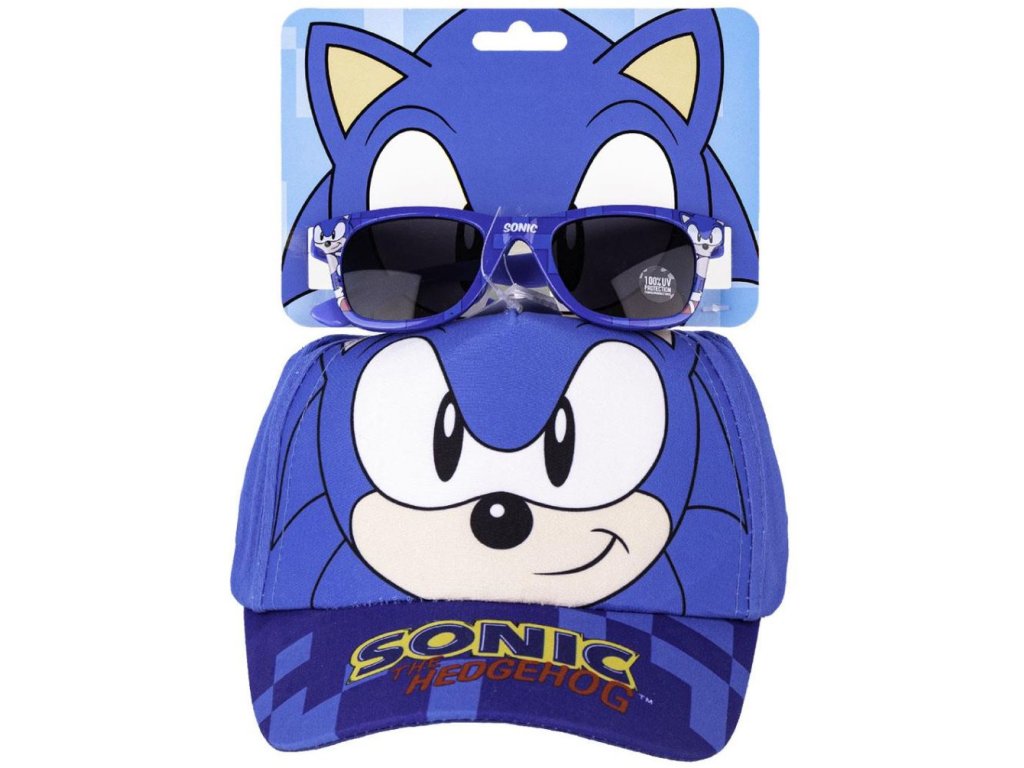 Dětská kšiltovka s motivem ježka Sonica v setu se slunečními brýlemi. Na zadní straně kšiltovky je řemínek, sloužící k nastavení velikosti.
