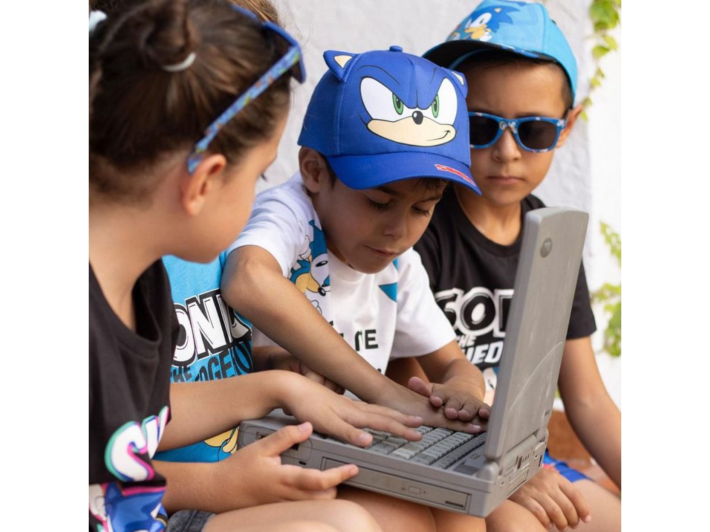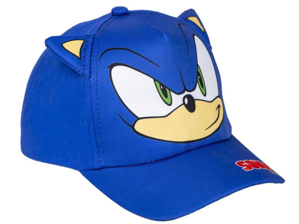 Oficiální produkt - dětská kšiltovka z katalogu dárkových a fashion výrobků s logem a grafikou animované videohry Sonic the Hedgehog.