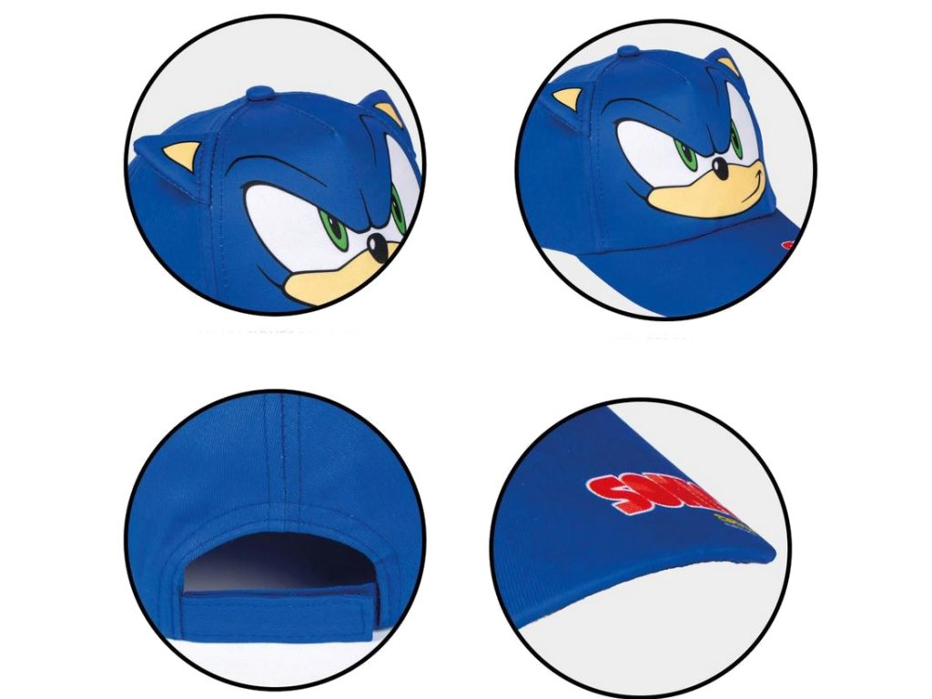 Modrá dětská kšiltovka s grafikou Sonica s 3D ušima. Na zadní straně kšiltovky je látkový řemínek na suchý zip, sloužící k nastavení velikosti. Kšiltovka je vhodným doplňkem pro každého menšího i většího fanouška.