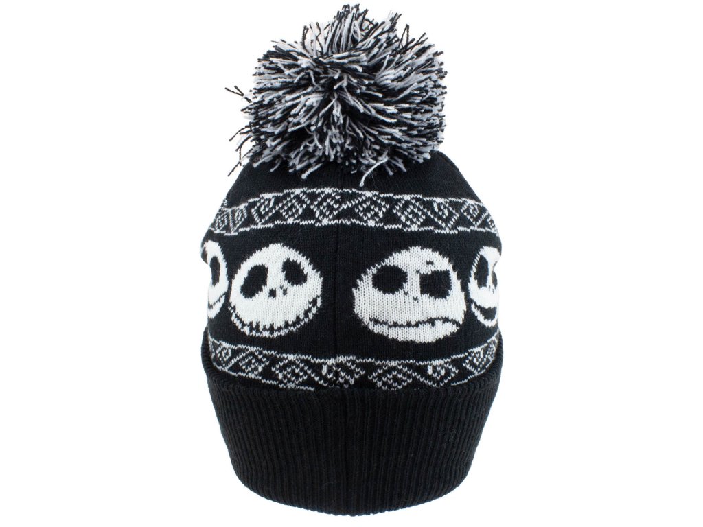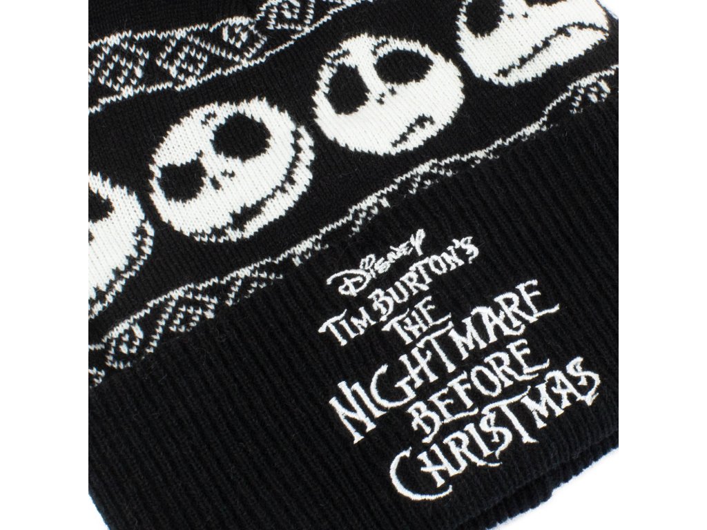 Černá přeložená zimní čepice s bambulí a logem a motivem filmu Nightmare Before Christmas.