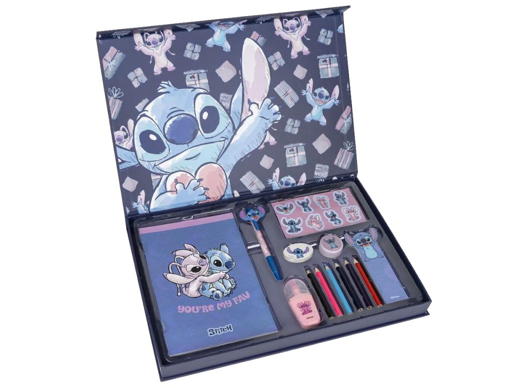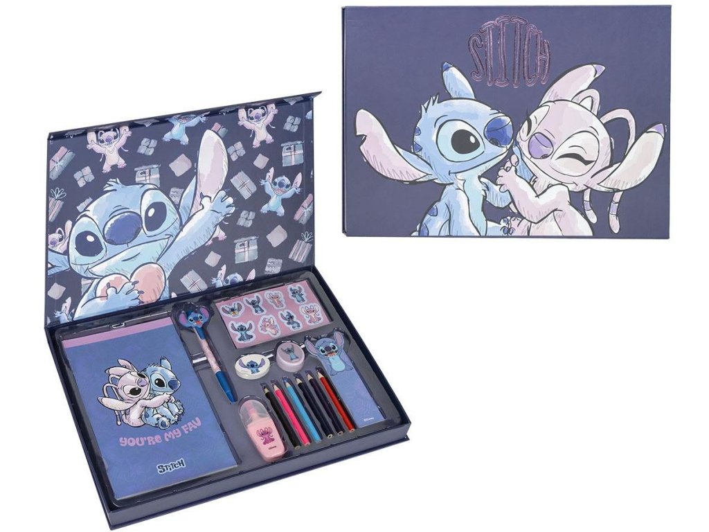 Dárkový set s poznámkovým blokem velikosti A5 a psacími potřebami v grafice Stitche a Angel. Set je zabalen v dárkové krabici a je vhodným dárkem pro všechny menší i větší kreativní fanoušky těchto roztomilých postaviček.