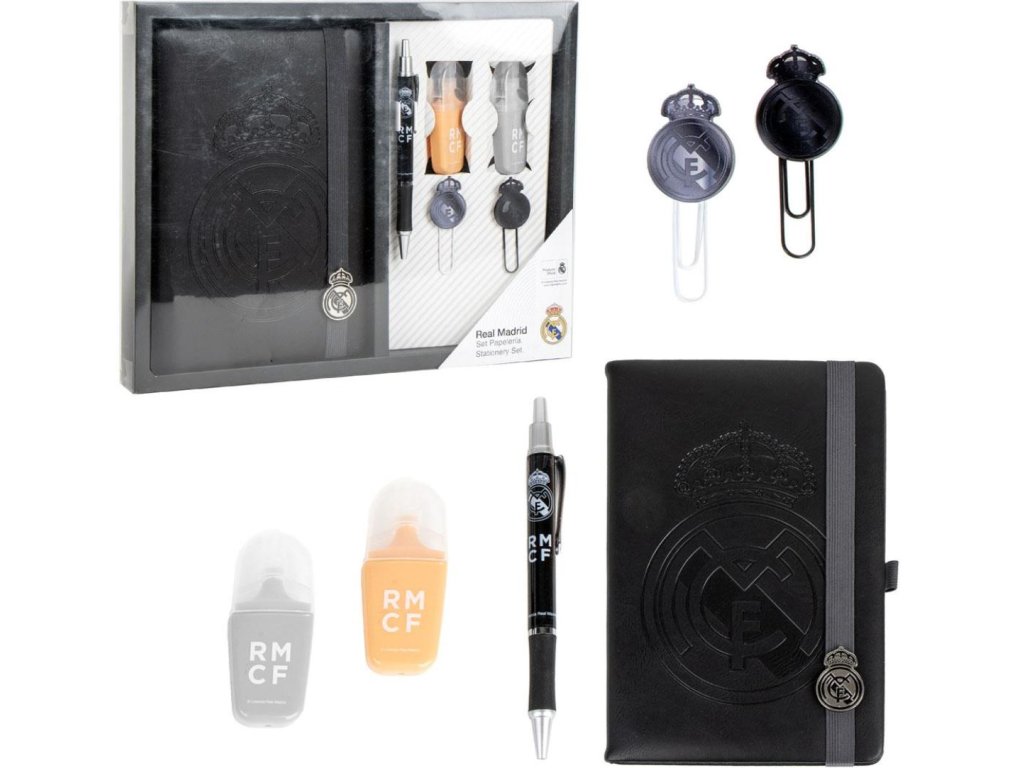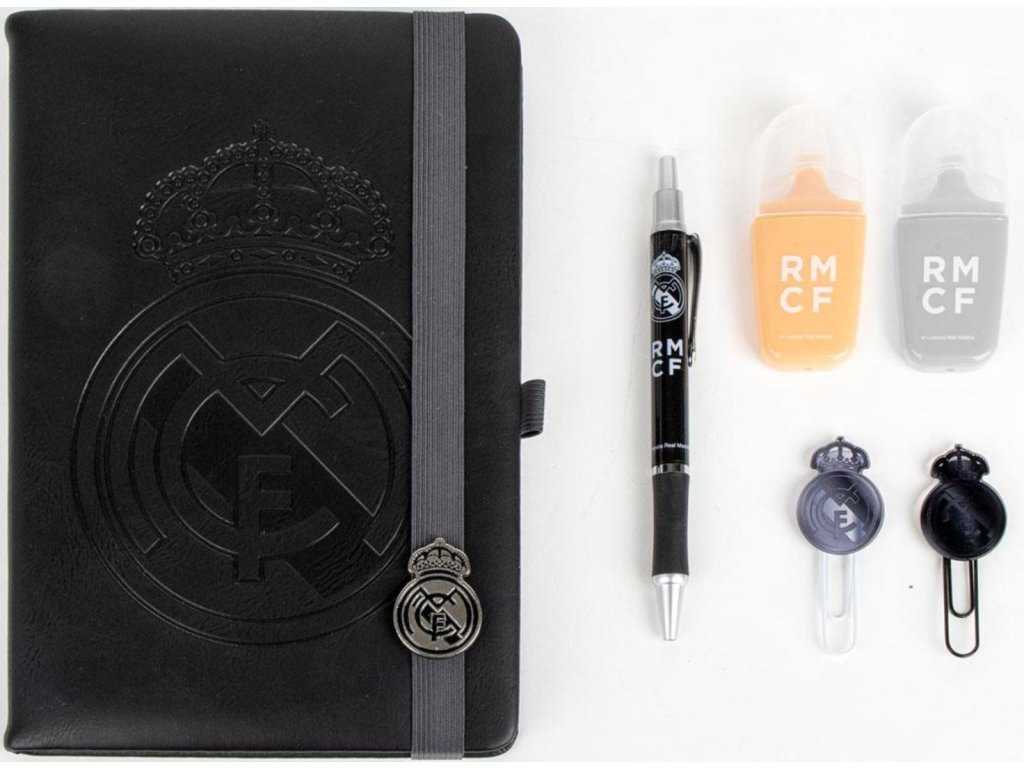 Oficiální produkt - dárkový set kancelářských potřeb z katalogu výrobků s grafikou a licencí slavného fotbalového týmu Real Madrid.