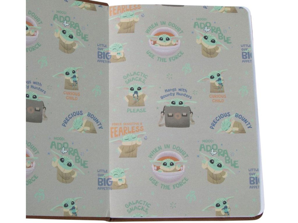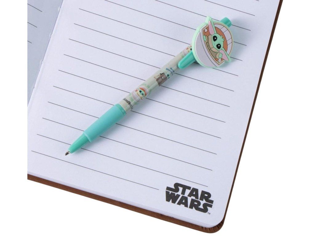 Hledáte dokonalý dárek pro fanouška Star Wars? Tento dárkový set s roztomilým motivem Baby Yody ze seriálu Mandalorian potěší každého milovníka galaktické ságy. Hnědý poznámkový blok ve velikosti A5 ozdobený roztomilým 3D motivem Baby Yody. Součástí je i propiska se stejným potiskem, která perfektně ladí s designem bloku a zpříjemní tak nejen psaní do bloku. Set je zabalen v elegantní dárkové krabici, což z něj dělá skvělý dárek, který je připraven k okamžitému předání.