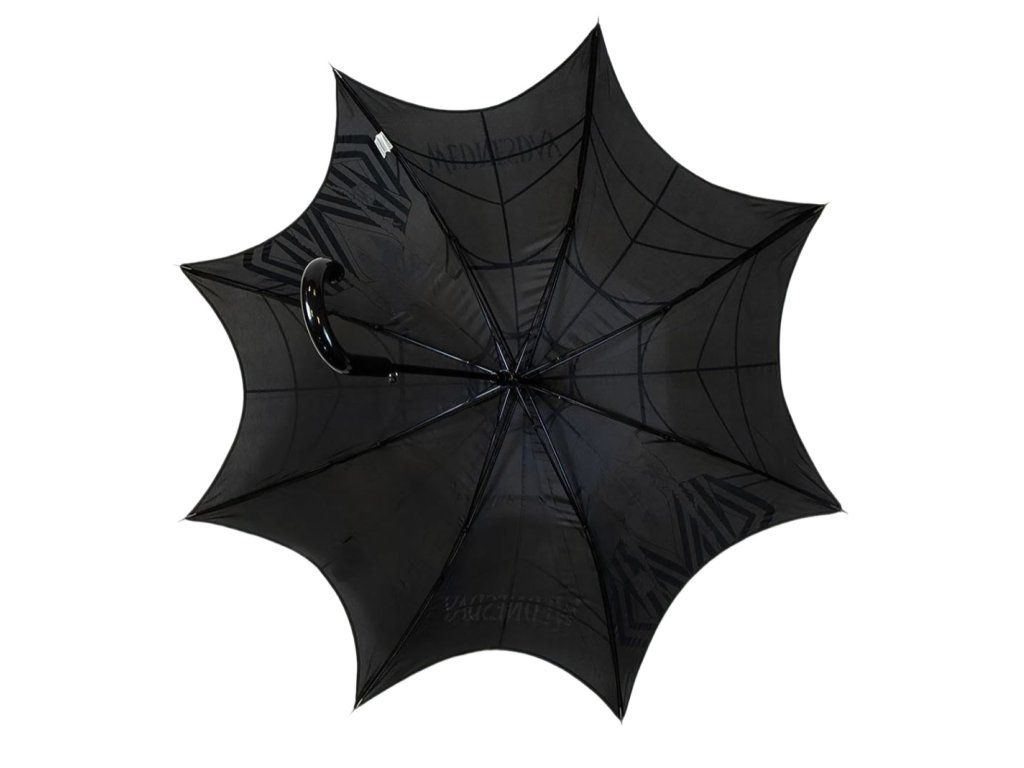 Automatický deštník s černým designem a bílými detaily inspiroaný postavou Wednesday.