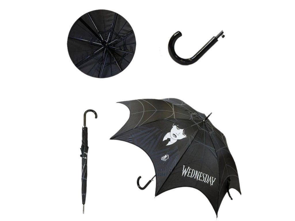 Oficiální produkt - skládací deštník z katalogu zboží s licencí populárního amerického nadpřirozeného seriálu Wednesday od Netflix.