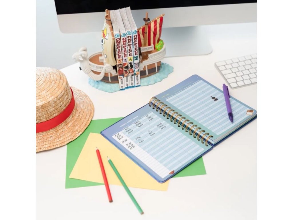 Oficiální produkt - 12 měsíční školní plánovač v kroužkové vazbě na rok 2025/2026 s licencí populární japonské mangy One Piece.