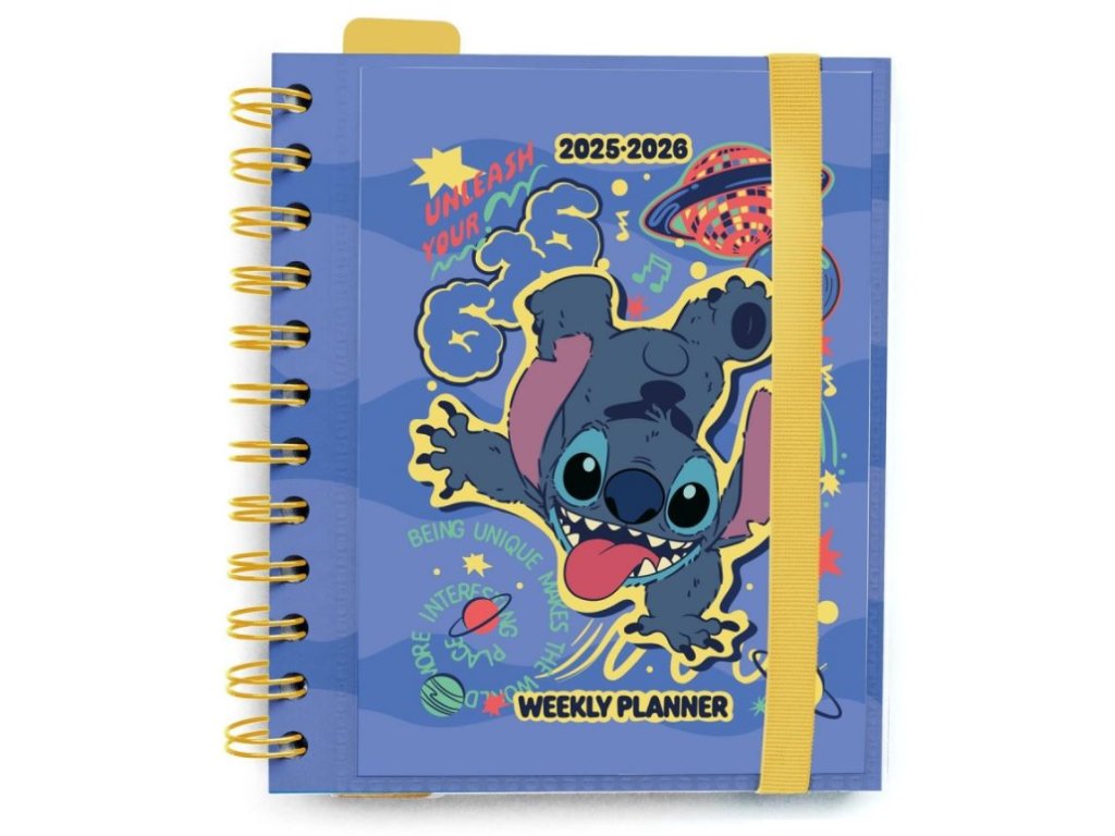 Oficiální produkt - 11 měsíční školní plánovač v kroužkové vazbě na rok 2025/2026 s licencí populární pohádky Lilo & Stitch od Disney.