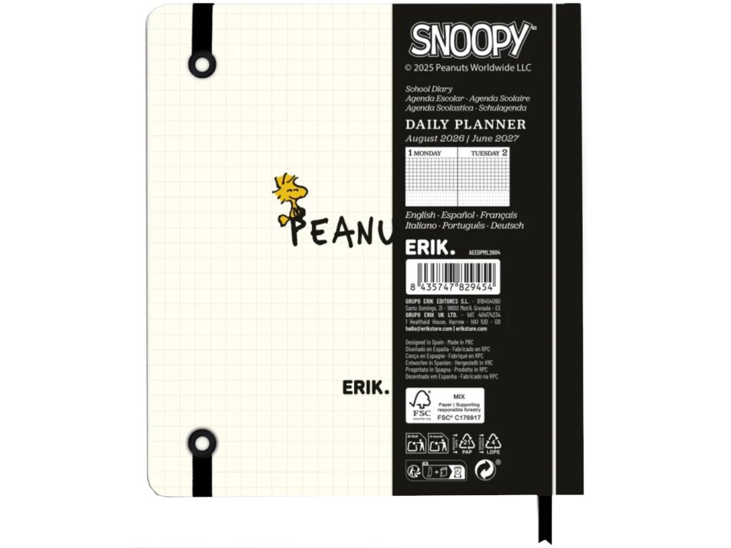 Oficiální produkt - školní plánovací diář na rok 2026/2027 s licencí oblíbeného psa Snoopyho.