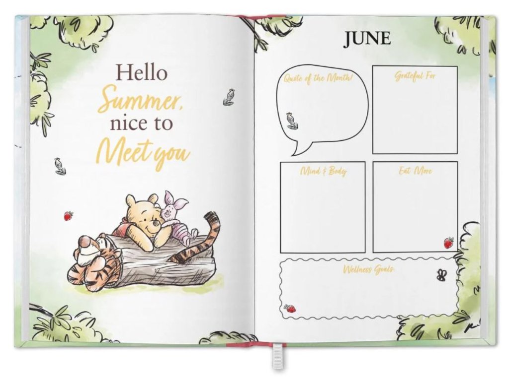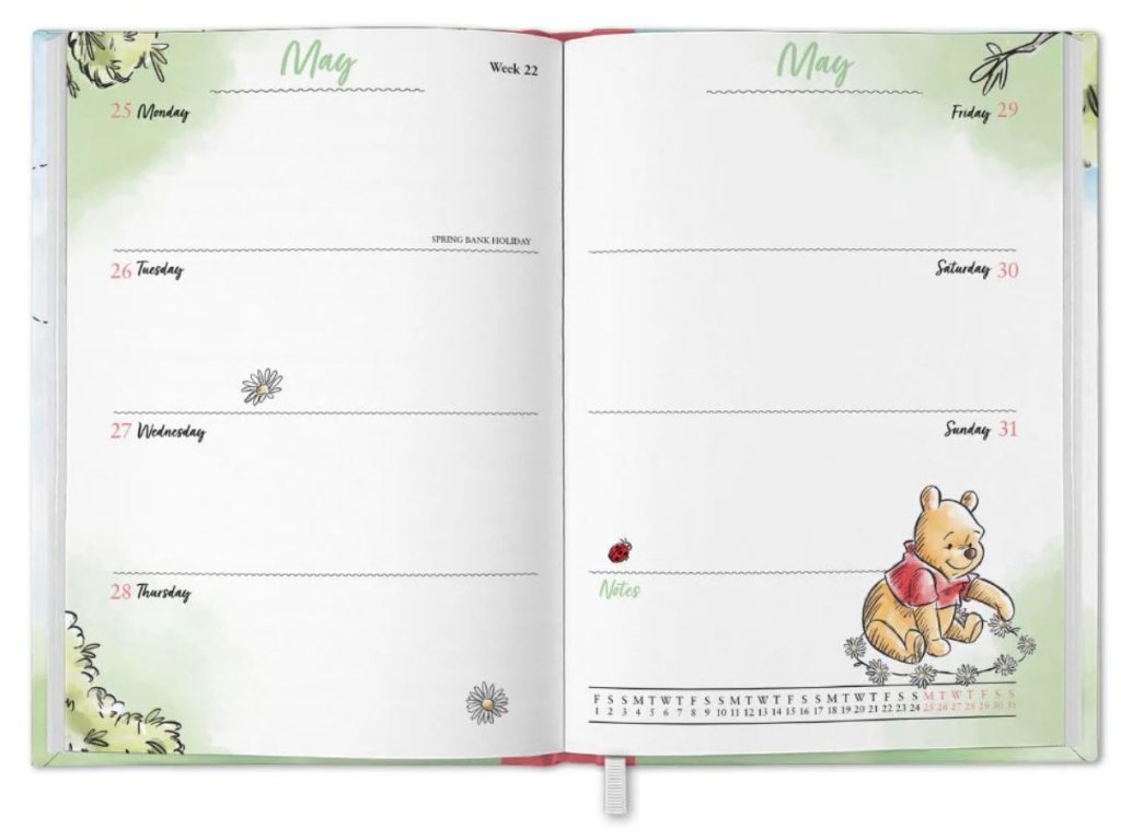 Celoroční praktický plánovací A5 diář s obrázky a grafikou Medvídka Pú.