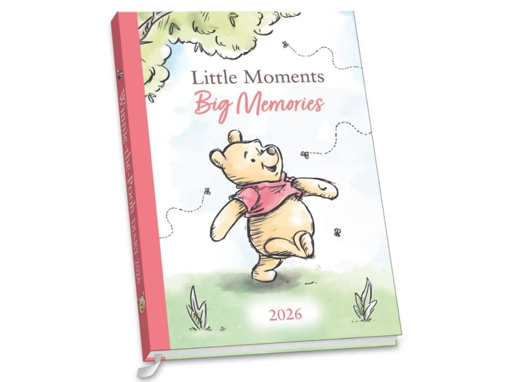 Oficiální produkt - A5 diář na rok 2026 s licencí a grafikou populární kreslené postavičky Medvídek Pú.
