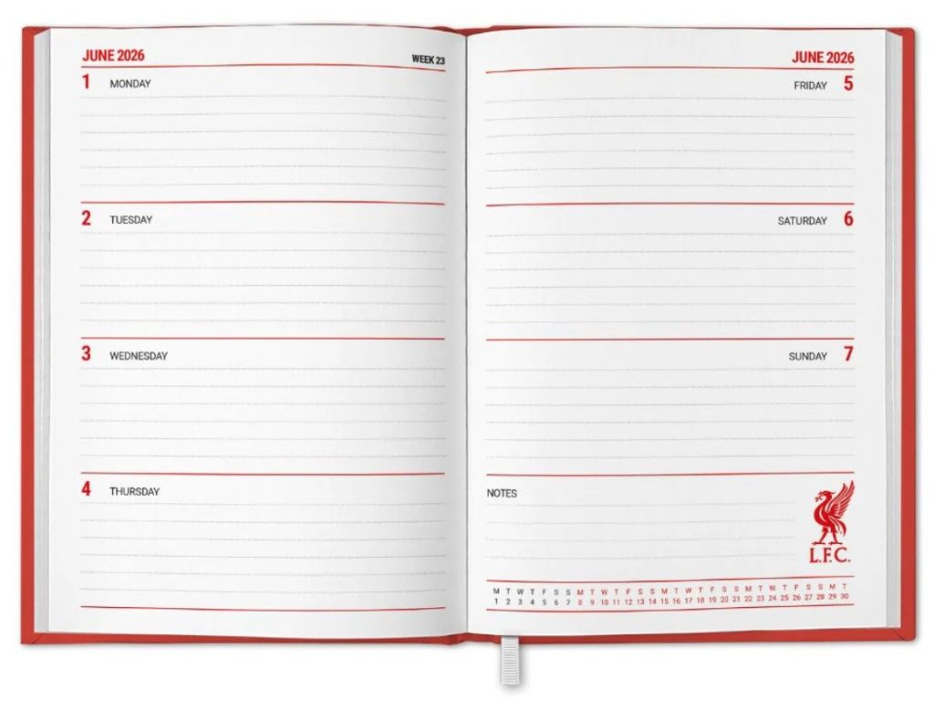 Oficiální produkt - A5 diář na rok 2026 s licencí hráčů britského fotbalového klubu FC Liverpool.
