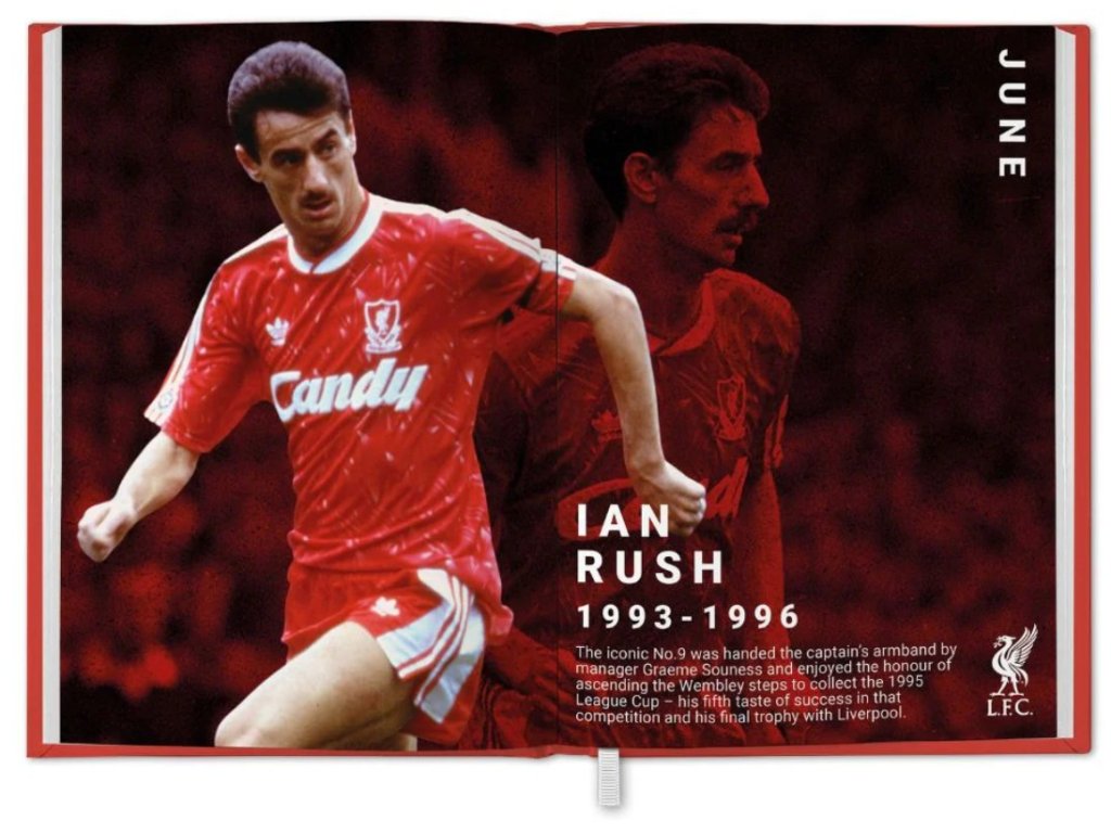 Celoroční praktický plánovací A5 diář s grafikou a fotografiemi hráčů britského fotbalového klubu FC Liverpool.