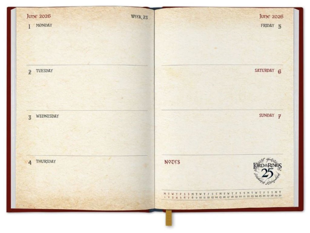 Oficiální produkt - A5 diář na rok 2026 s licencí a grafikou populární knižní a filmové ságy Lord Of The Rings (Pán prstenů).