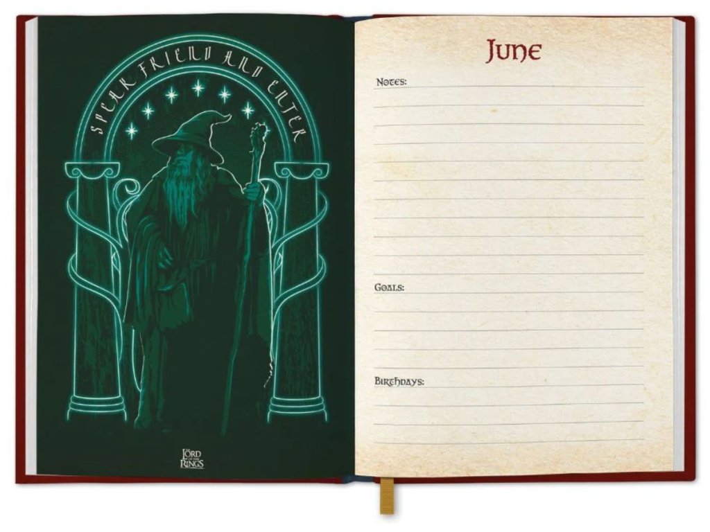 Celoroční praktický plánovací A5 diář s obrázky a grafikou Pána prstenů.