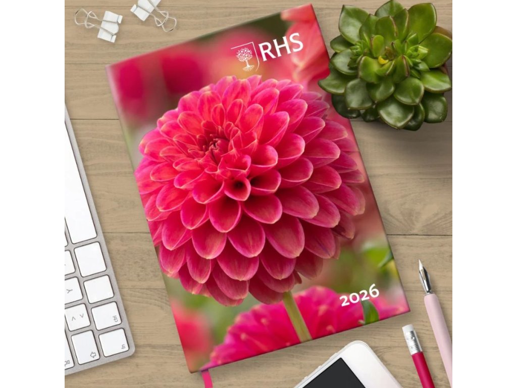 Oficiální produkt - A5 diář na rok 2026 s licencí a grafikou zahradnické společnosti RHS - Royal Horticultural Society.