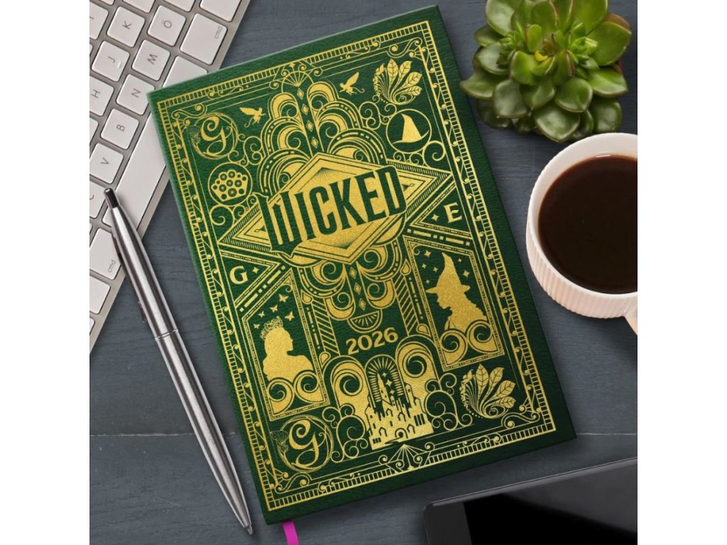 Oficiální produkt - A5 diář na rok 2026 s licencí a grafikou amerického hudebního filmu Wicked (Čarodějka).