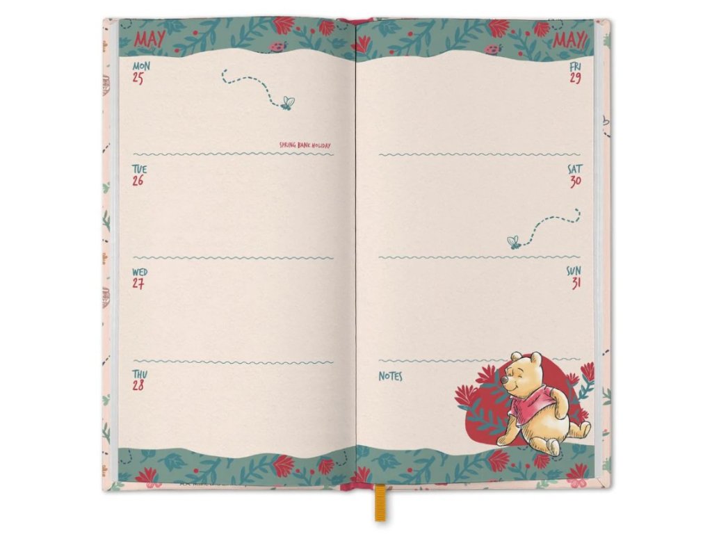 Celoroční praktický plánovací malý, týdenní slim diář s grafikou knižní a filmové postavičky Medvídka Pú.