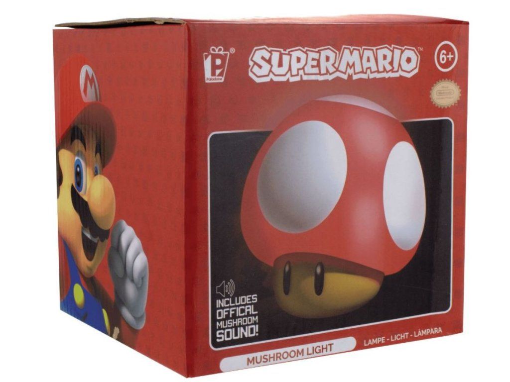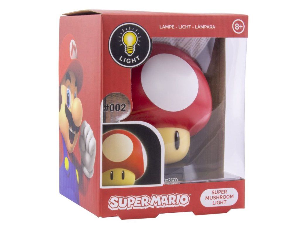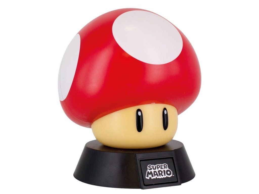 Dekorativní stolní lampa ve tvaru Mushroom (houba) ze hry Super Mario. Lampa se aktivuje zmáčknutím klobouku houby a po rozsvícení vydává hřejivé červené a žluté světlo a je tak skvělá i do dětských pokojů jako světlo na usínání. Napájení lampy