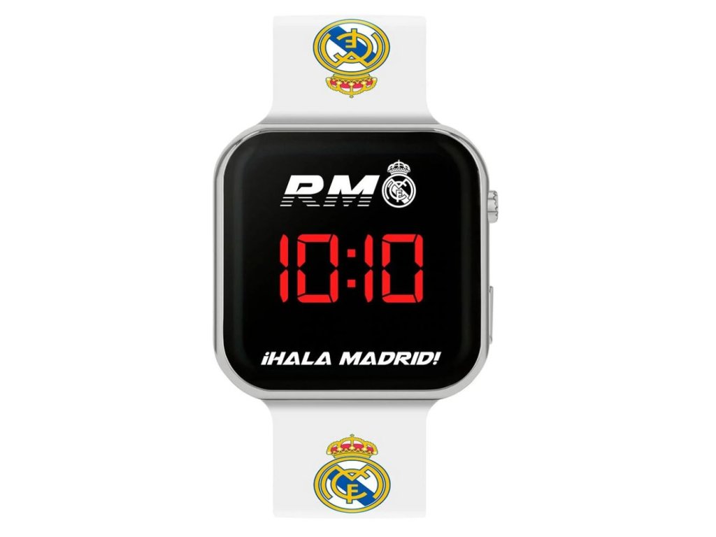 Stylové dětské digitální hodinky s motivem slavného fotbalového klubu Real Madrid potěší každého fanouška. Moderní černý displej s kovovým rámečkem a výrazným červeným podsvícením zajišťuje snadné čtení času. Sportovní design dodává hodinkám jedinečný vzhled a je vhodný jako luxusní doplněk každého outfitu. Pohodlný silikonový řemínek je lehký, příjemný na nošení a přizpůsobí se dětskému zápěstí. Hodinky jsou ideální do školy, na trénink i na běžné nošení - malý fanoušek tak může mít svůj oblíbený tým stále u sebe. Skvělý tip na dárek pro všechny malé milovníky fotbalu, kteří chtějí ukázat, komu fandí.