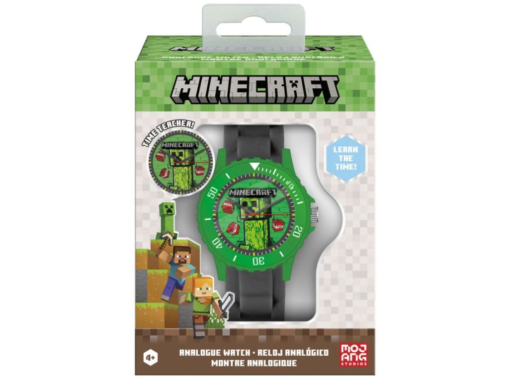 Oficiální produkt - náramkové dětské hodinky z katalogu výrobků se znakem a grafikou populární videohry Minecraft.