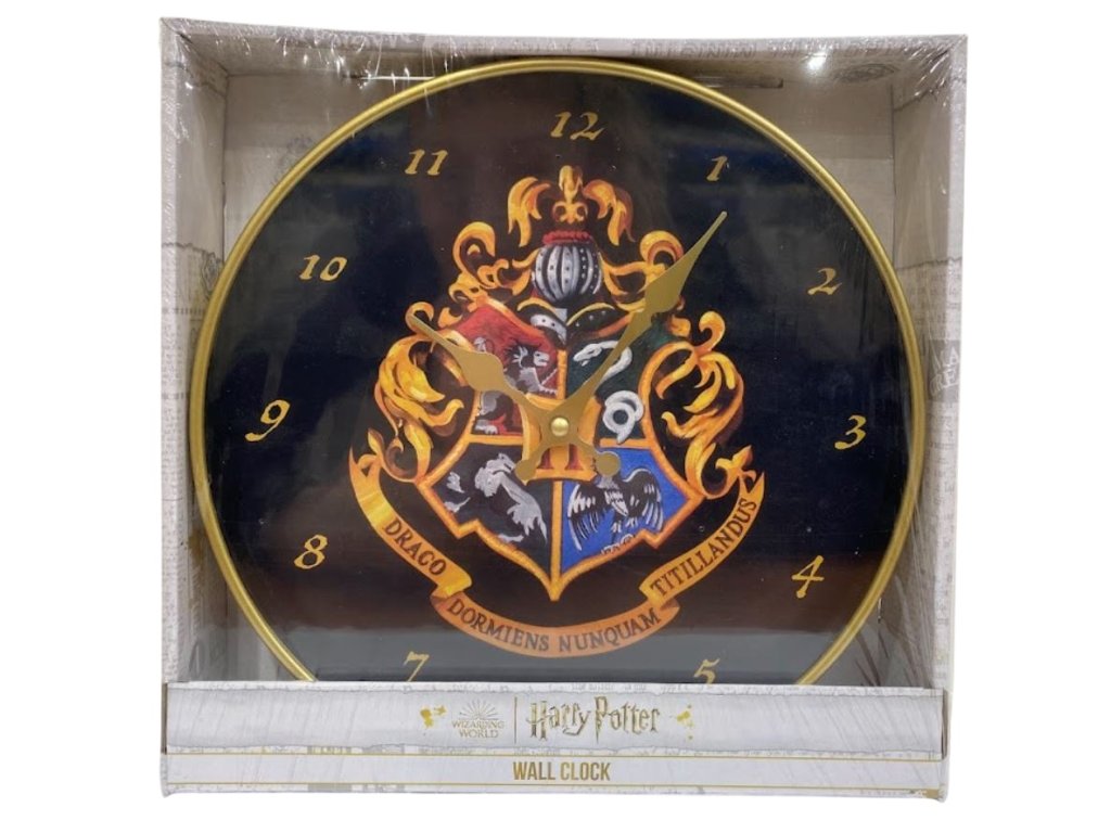 Kulaté nástěnné hodiny s motivem a logem z kouzelnické série Harry Potter. Hodiny jsou vyrobeny z kvalitního tvrdého plastu s výrazným vzorem erbu a nápisu Bradavické školy čar a kouzel. Hodiny jsou napájené 1x AA baterií, která není součástí balení. Tyto nápadné hodiny se budou vyjímat v každém pokoji, kde budou sloužit jako kouzelnická dekorace.