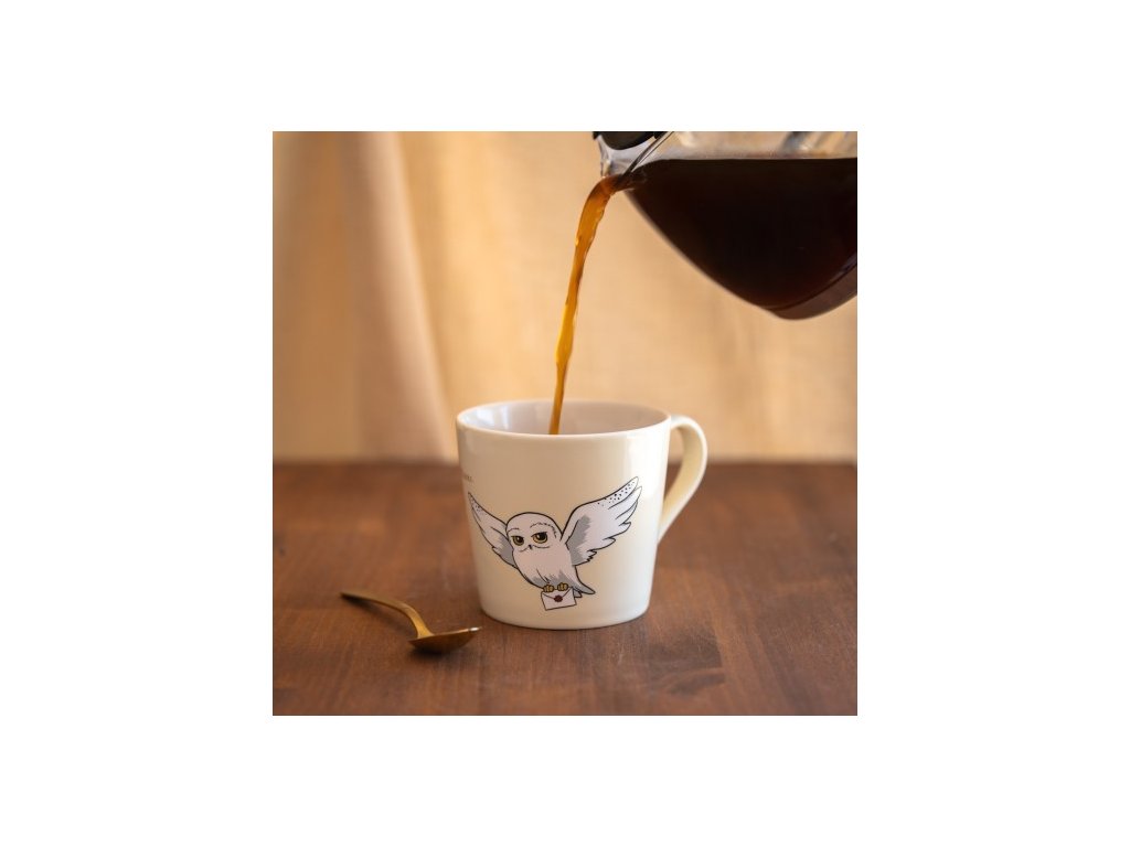 Hrnek vyvedený v béžové barvě s grafikou bílé sněžné sovy Hedviky, kterou můžete znát ze ságy Harryho Pottera. Hrníček je balen a dodáván v papírové krabičce s designem ságy Harryho Pottera.
