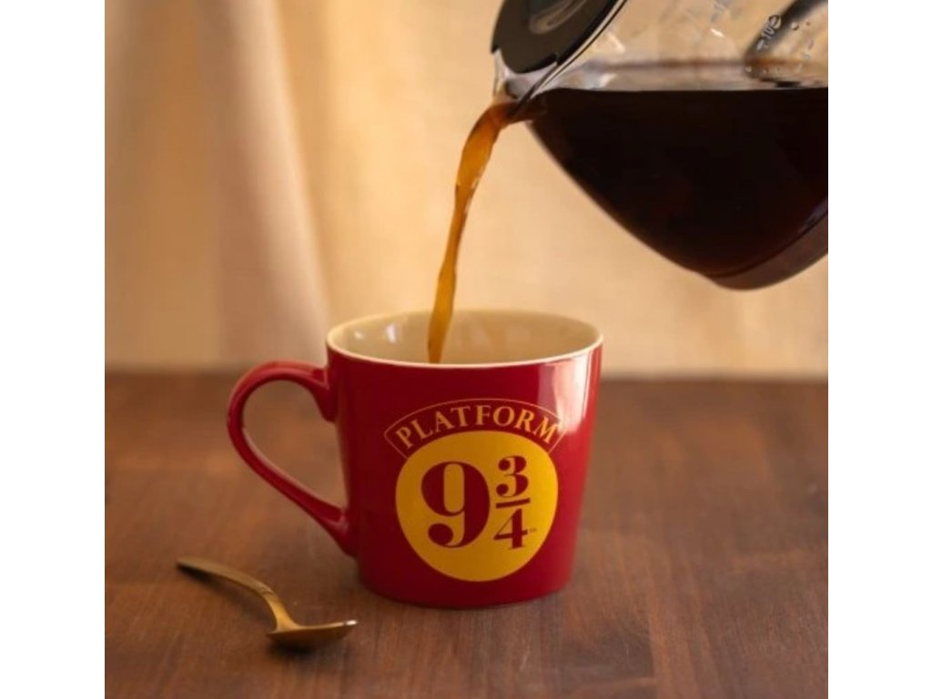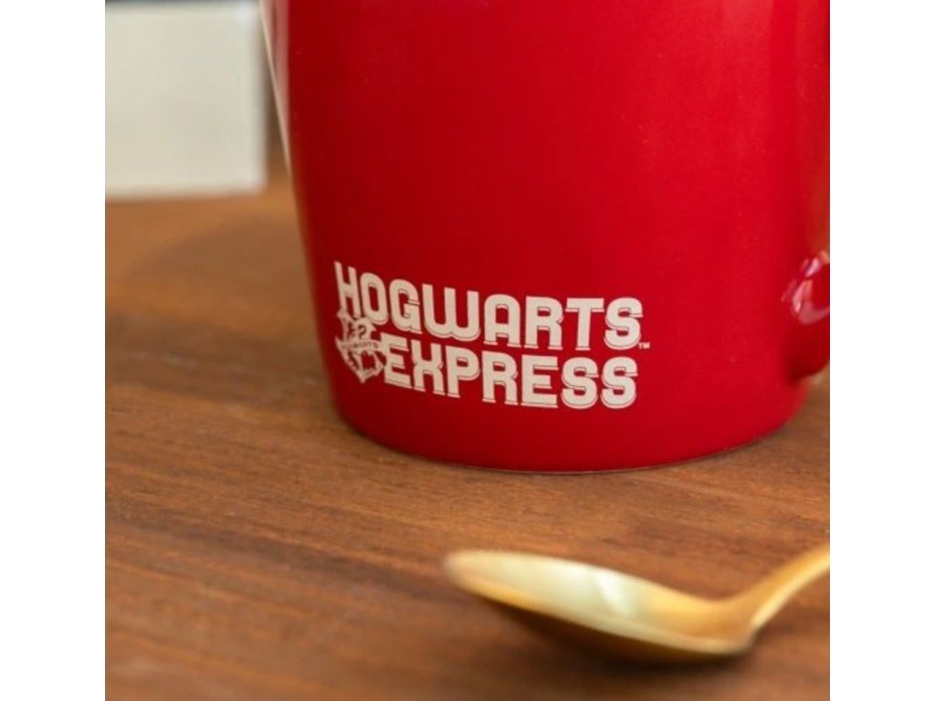 Hrnek vyvedený v červené barvě s grafikou oranžového loga nástupiště 9 a 3/4, které můžete znát ze ságy Harryho Pottera. Hrníček je balen a dodáván v papírové krabičce s designem ságy Harryho Pottera.