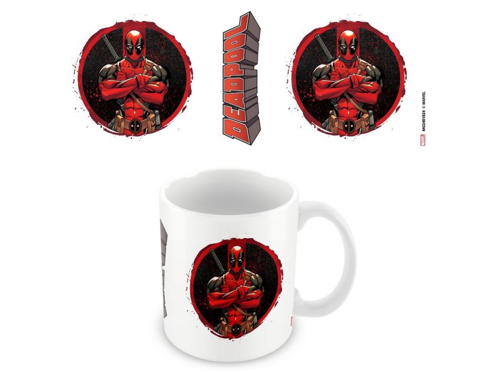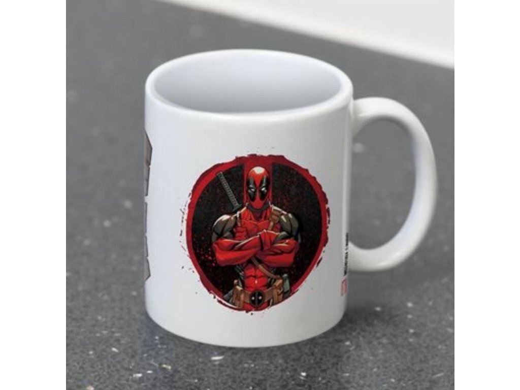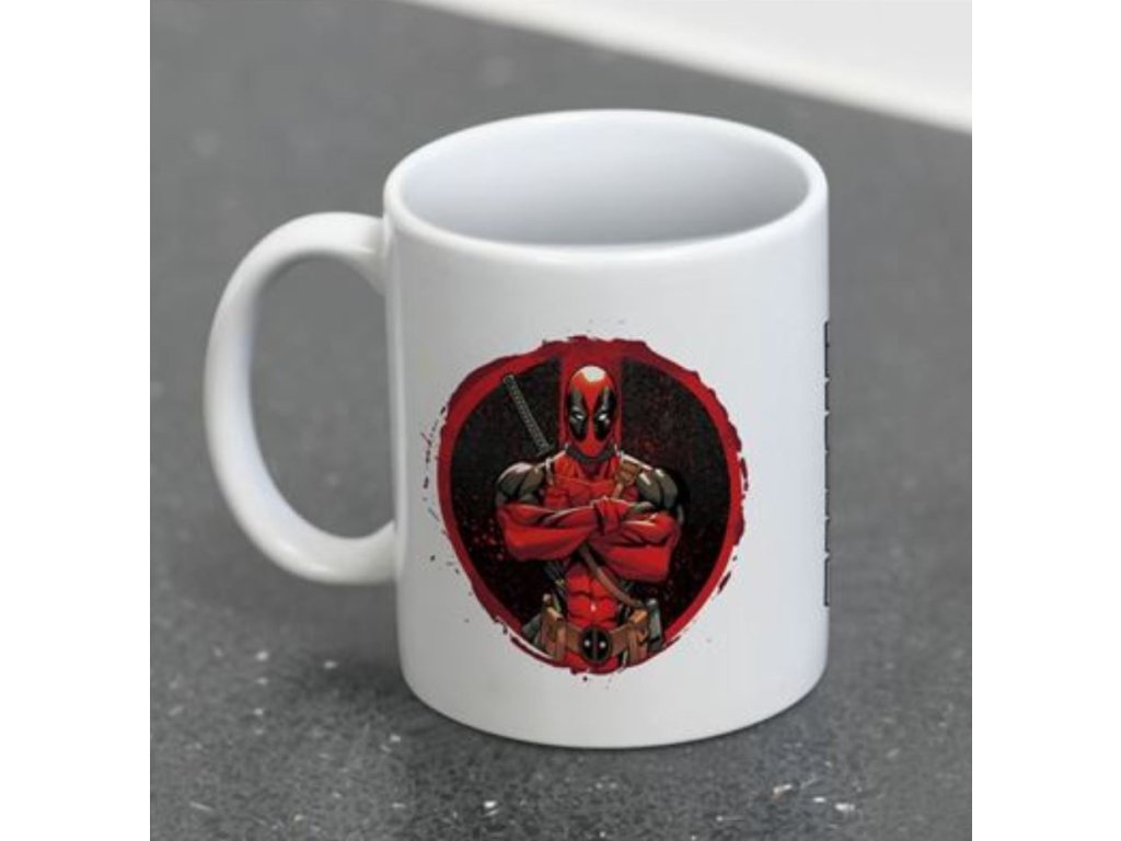 Oficiální hrnek z katalogu módních fashion výrobků a merchandise produktů s licencovaným logem, grafikou a fotografiemi postavy Deadpool z vydavatelství Marvel Comics.