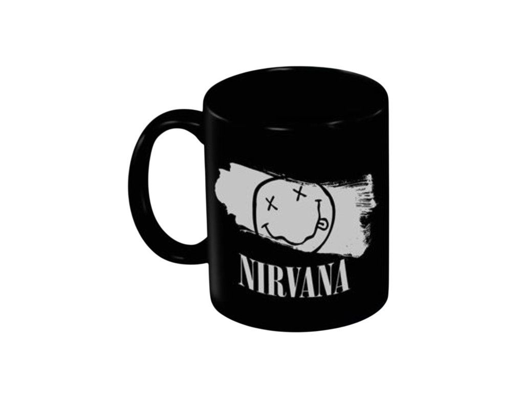 Oficiální produkt - hrnek a doplňkové zboží z katalogu výrobků s logem, fotografiemi, grafikou americké grungeové kapely Nirvana.