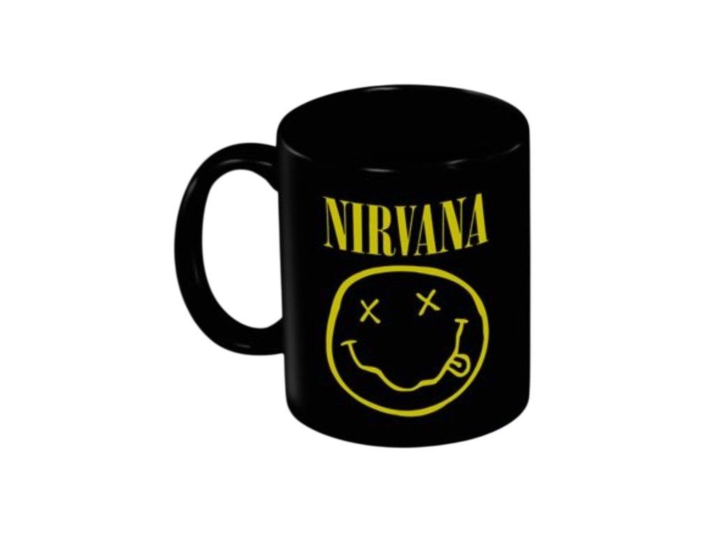 Oficiální produkt - hrnek a doplňkové zboží z katalogu výrobků s logem, fotografiemi, grafikou americké grungeové kapely Nirvana.