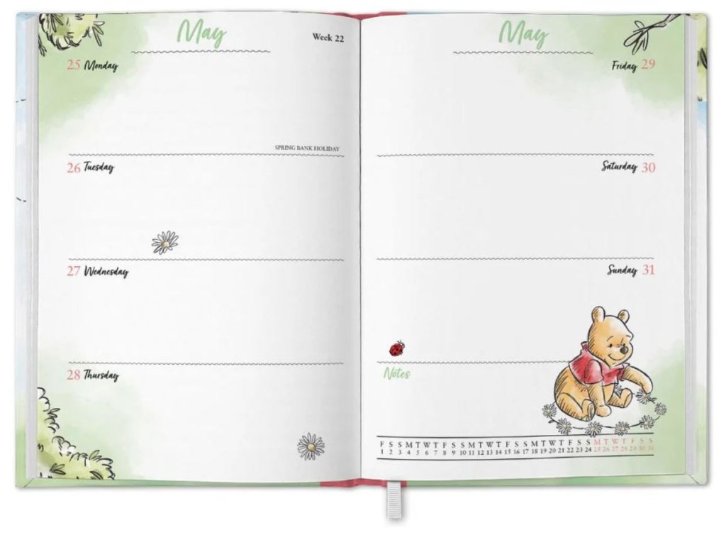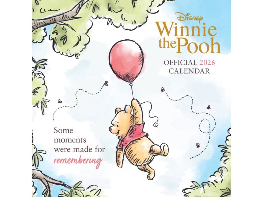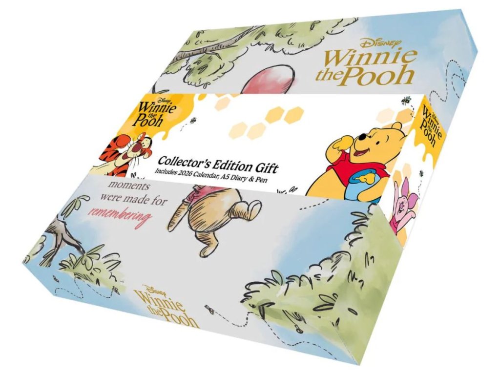 Oficiální produkt - exklusivní dárkový set studia Disney s kalendářem a diářem s propiskou na rok 2026 s licencí a grafikou kreslené postavičky Winnie The Pooh (Medvídek Pú).